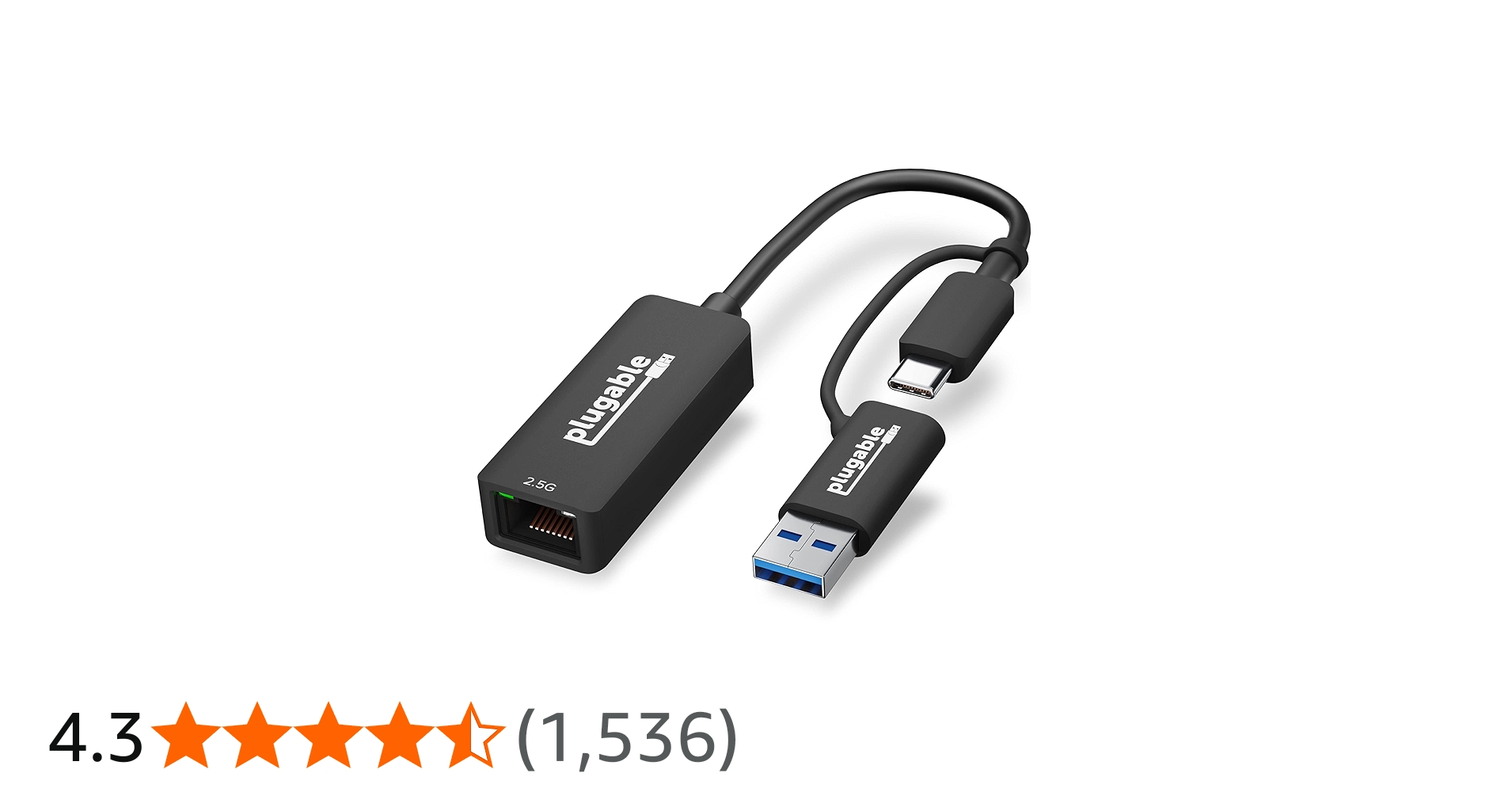 Plugable USB イーサネットアダプター 2.5Gbps ネットワーク Type-C USB3.0 対応 有線 LAN、Windows、macOS、Linux 互換