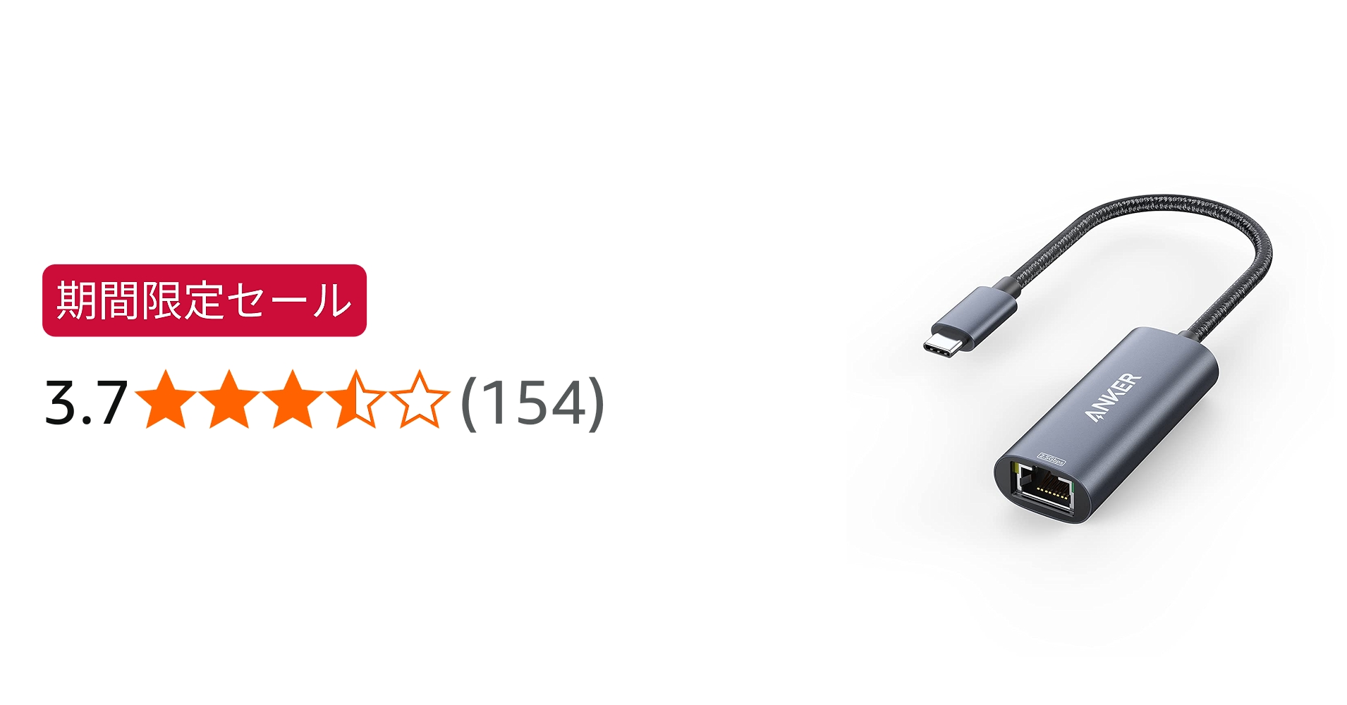 セール: Anker PowerExpand USB-C & 2.5Gbps イーサネットアダプタ 2.5Gbps 高速イーサネット通信 MacBook Air Pro iPad Pro対応