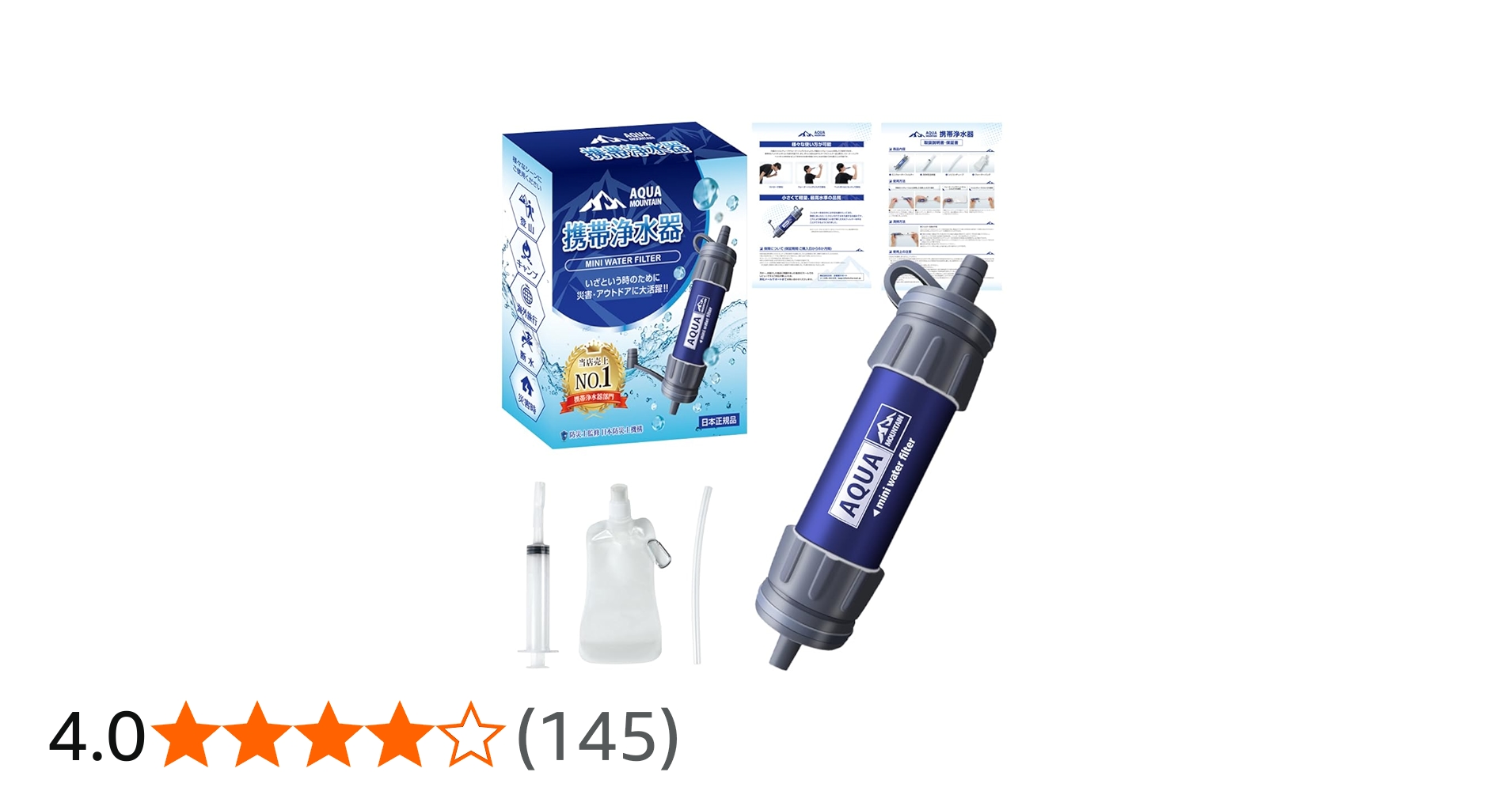 携帯用浄水器 浄水器 携帯浄水器 携帯型浄水器 濾過器 災害グッズ 防災 サバイバル 地震 アウトドア 避難バッグ ボーイスカウト AQUA MOUNTAIN